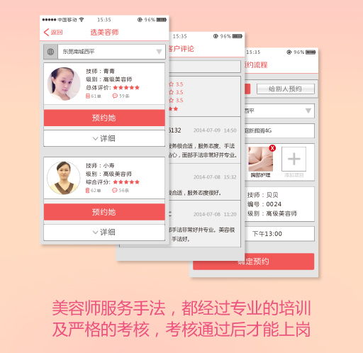 4、您理解并同意,金屋美嬌僅提供美容師的預(yù)約服務(wù),對于服務(wù)的最終交易與否,由您自行判斷,且審慎交易。美容師的信譽(yù)、口碑,售后服務(wù),都是您要關(guān)注的地方。